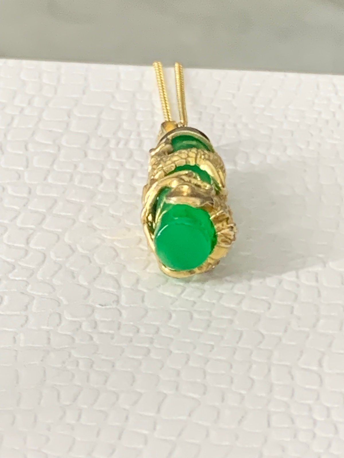 Unisex Dragon or Serpent Wrapped Chrysoprase Barrel Pendant Sterling Silver